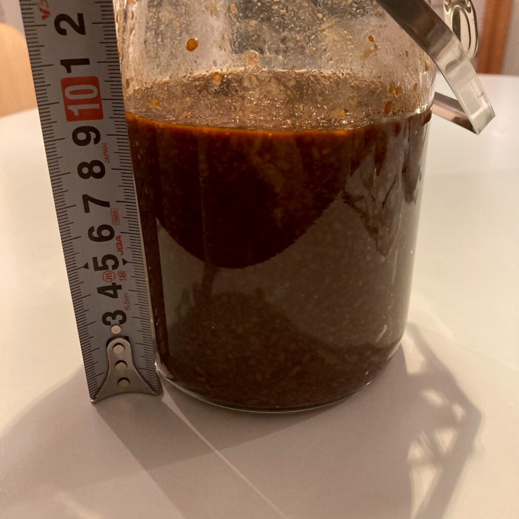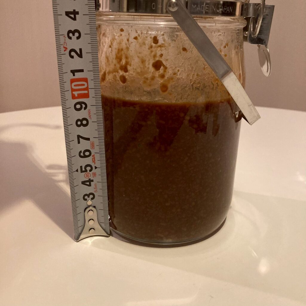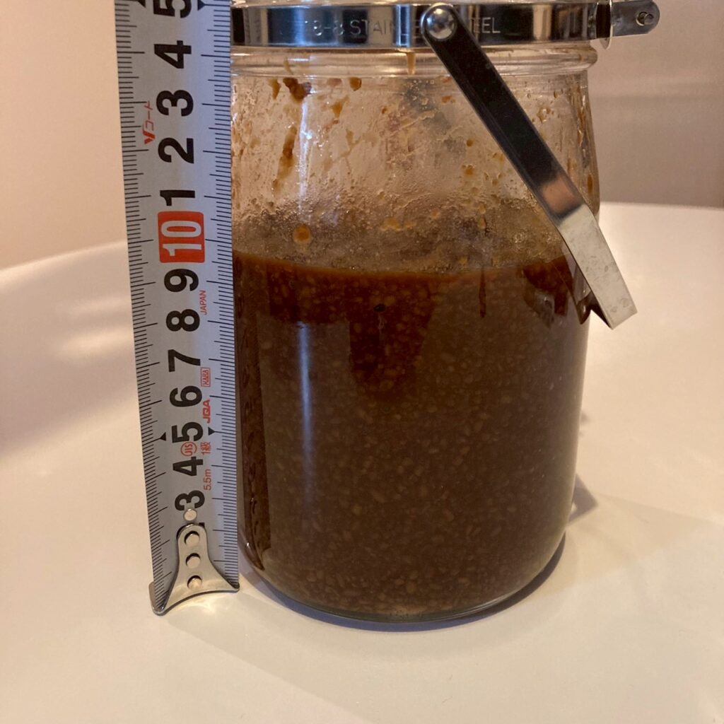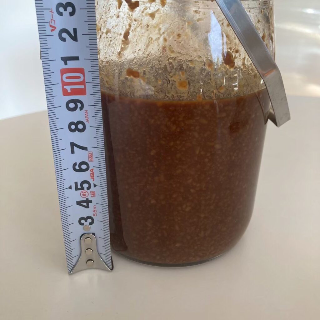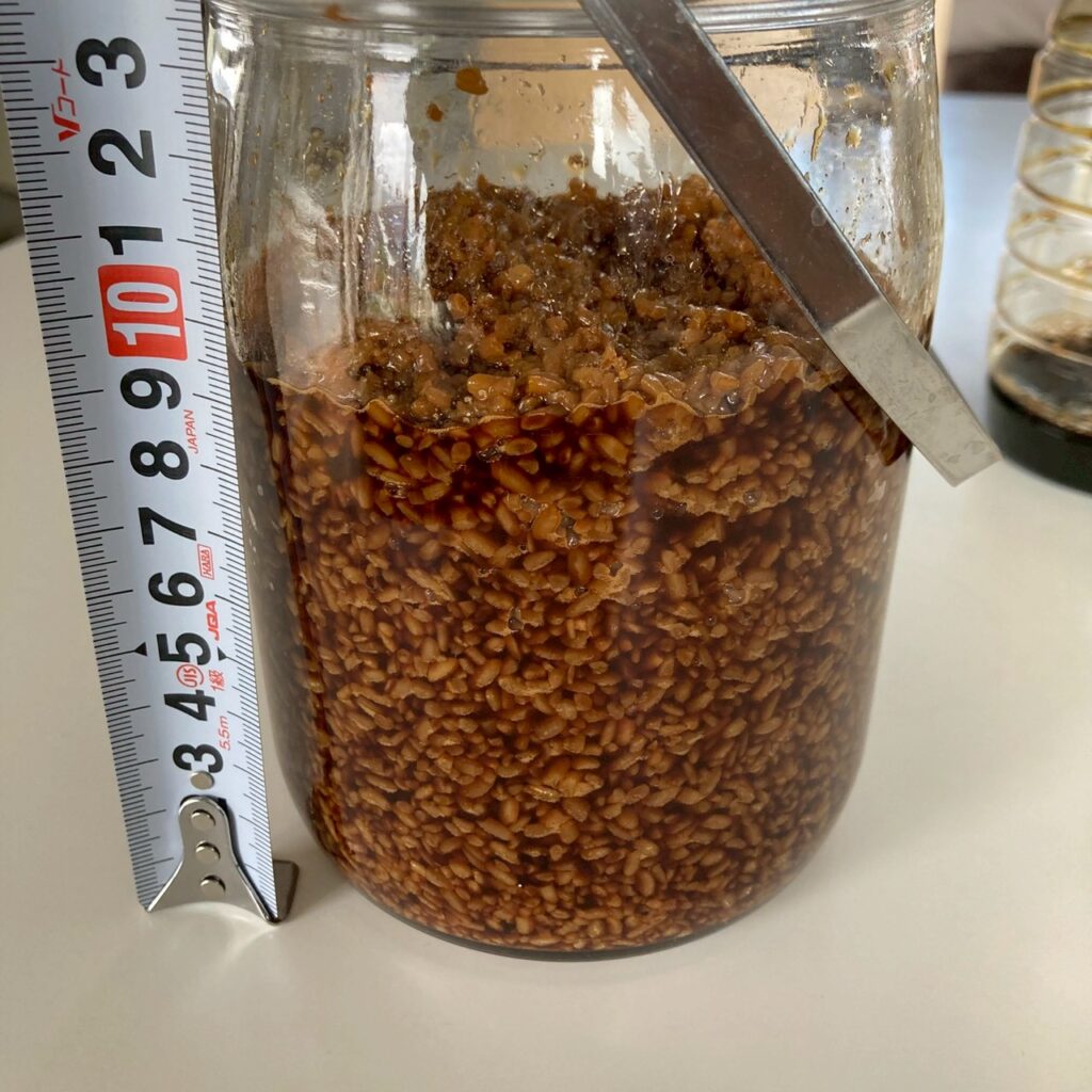3週間ほど経って、少しすくって試したところ、だいぶ柔らかくなっていたので、これで完成でよいはず!今までは常温・暗室で保存していたが、ここからは冷蔵庫へ。